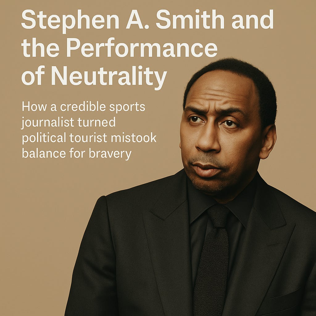 A few days ago, I wrote about the pathology of political apathy—how disengagement corrodes democracy from within. Stephen A.’s version is even slicker: the performative neutrality of someone who mistakes detachment for depth. His “both-sides” shtick is the same toxin in designer packaging. He thinks staying above the fray makes him wise when it just makes him complicit.